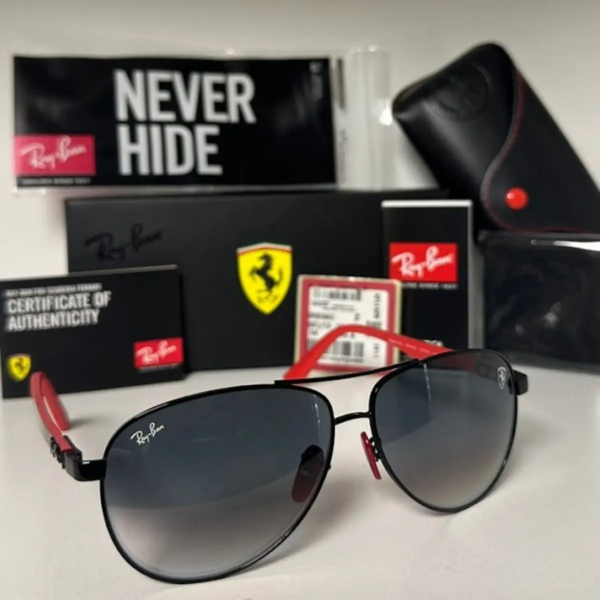 Los Ray-Ban Aviador Ferrari Negro / Gris Degradé reinterpretan el clásico Aviator incorporando el ADN deportivo de Ferrari. El armazón negro aporta sobriedad y carácter, mientras que el lente gris degradé ofrece una transición suave de color que mejora el confort visual y suma un look moderno y refinado.