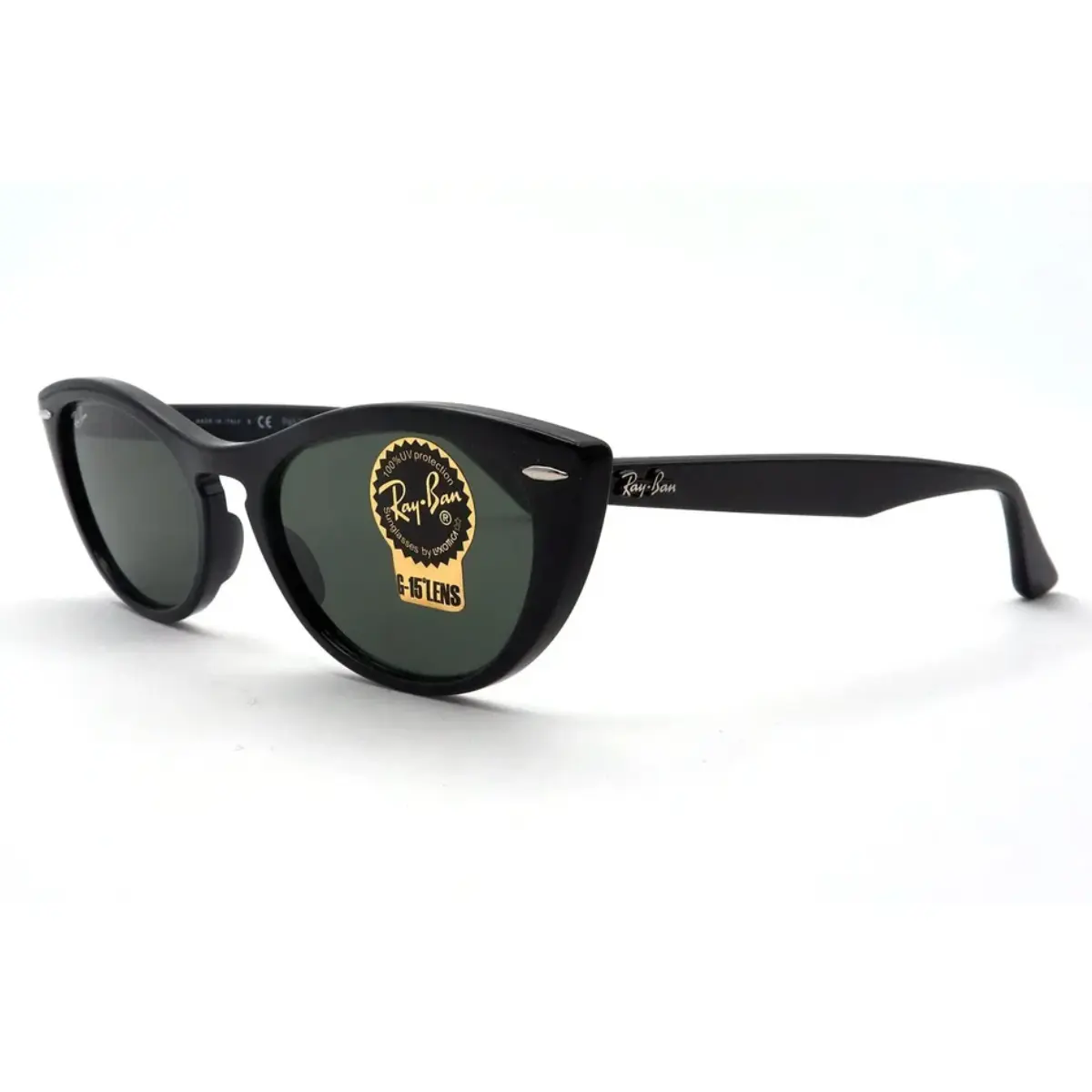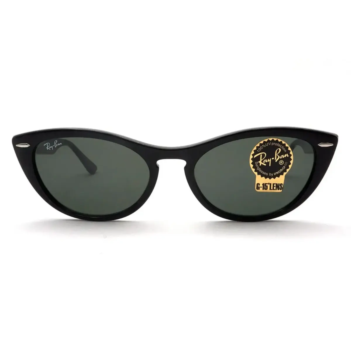 Los Ray-Ban Cat Eye Nina Negro Verde combinan la silueta cat eye clásica con una estética moderna y refinada. El armazón negro aporta presencia y sofisticación, mientras que los lentes verdes clásicos garantizan una visión equilibrada y confortable, fiel al ADN Ray-Ban.
