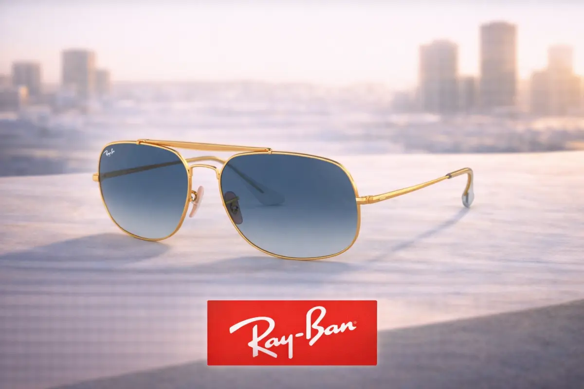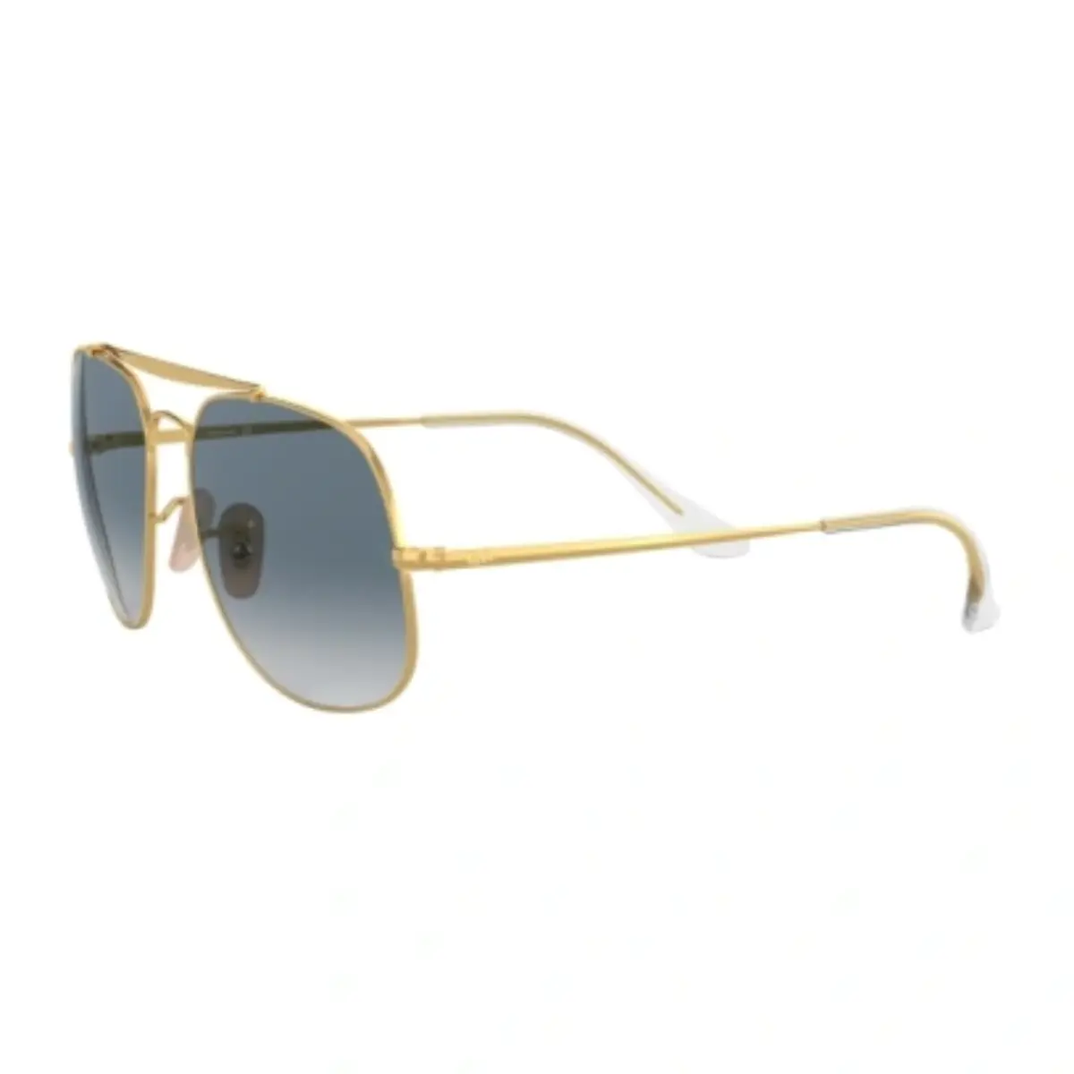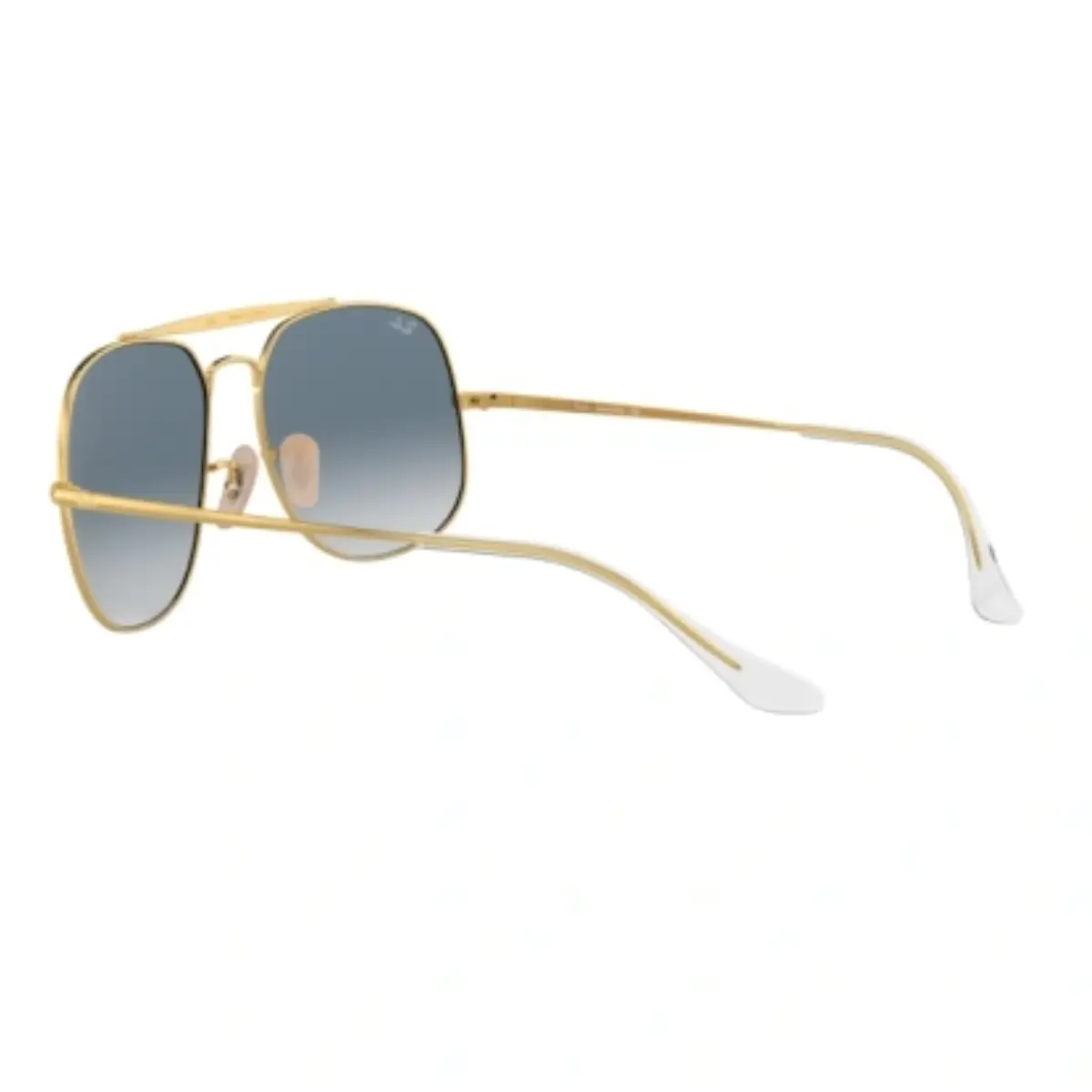 Los Ray-Ban The General Gold Blue Gradient actualizan el clásico aviador con una barra superior que aporta carácter y presencia. El armazón dorado suma sofisticación, mientras que los lentes azul degradé ofrecen una transición suave de color que mejora el confort visual y aporta un look moderno.